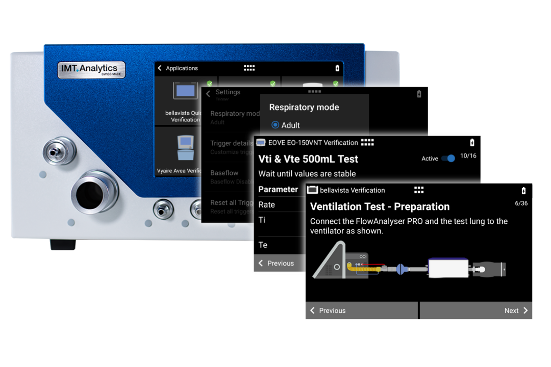 Darüber hinaus verfügt der FlowAnalyser PRO über Apps zur Ventilatortests, die darauf ausgelegt sind, Ihre Testverfahren zu vereinfachen und zu beschleunigen.