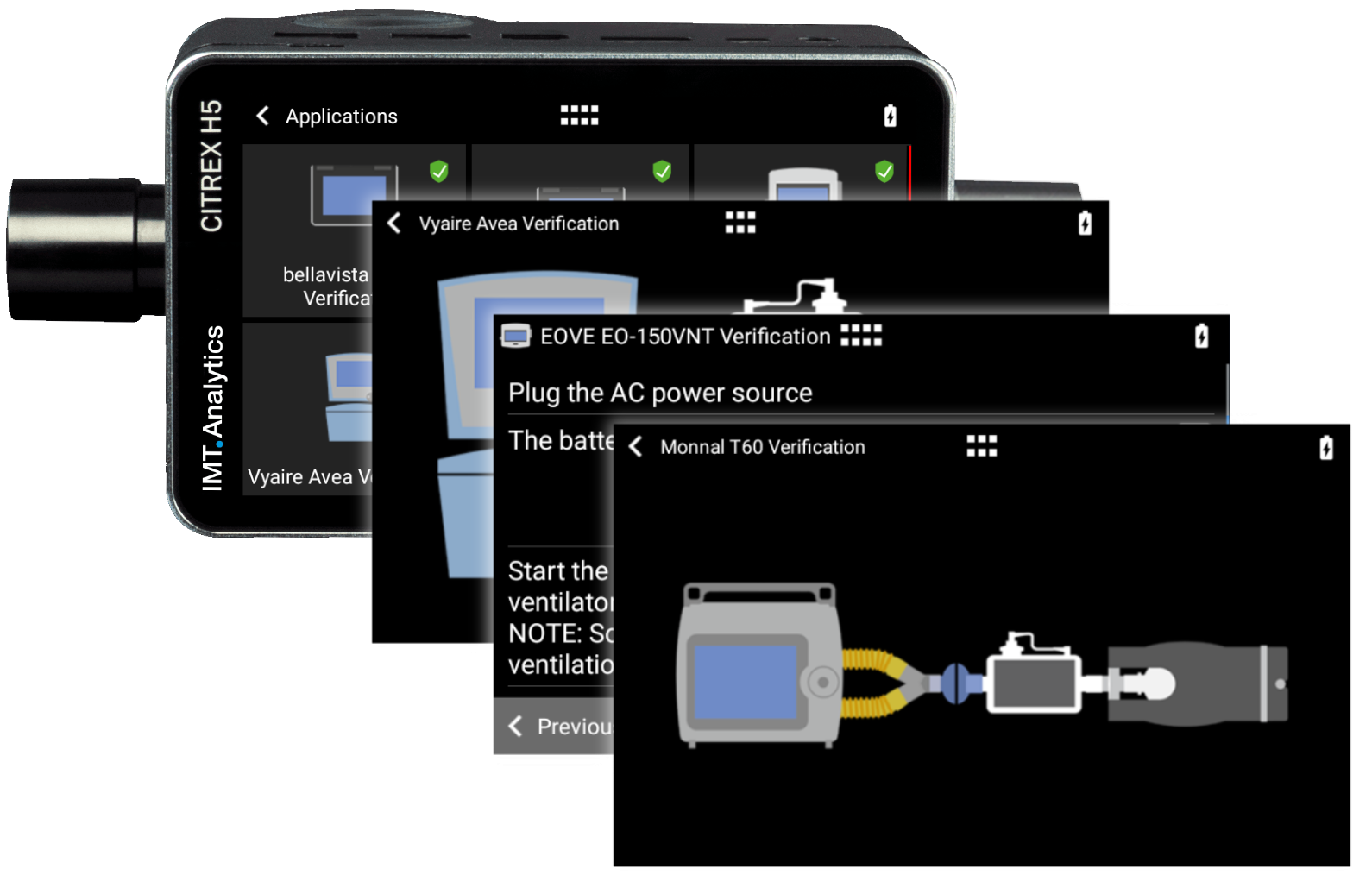 CITREX H5 旨在支持您在各种日常应用中的需求。凭借其精确性和可靠性,您可以使用 CITREX H5 测试各种医疗设备,如呼吸和麻醉设备、氧气流量计、压力表和吸引设备。