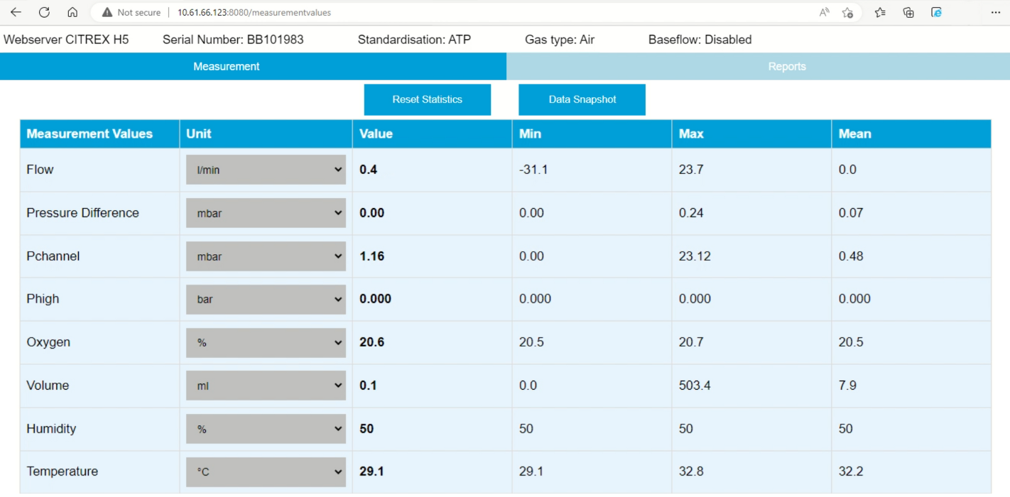 体验 CITREX H5 高级嵌入式网络服务器功能的便利。通过您的网络浏览器轻松访问和下载测试报告,无需复杂的网络集成和繁琐的数据传输。CITREX H5 的嵌入式网络服务器无缝集成到您的 WLAN 网络中,让您可以随时随地监控读数。嵌入式网络服务器还提供有用的功能,如监控和重置统计值、将测量值导出为 CSV 文件,以及查看和下载以 PDF 和 CSV 格式保存的测试报告。